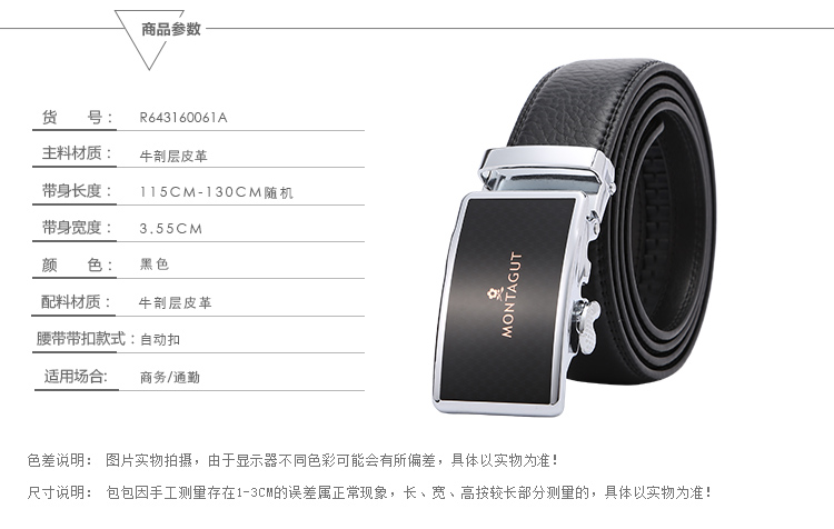 商品名称:梦特娇 男士皮带简约自动扣腰带男青年商务休闲裤带60061