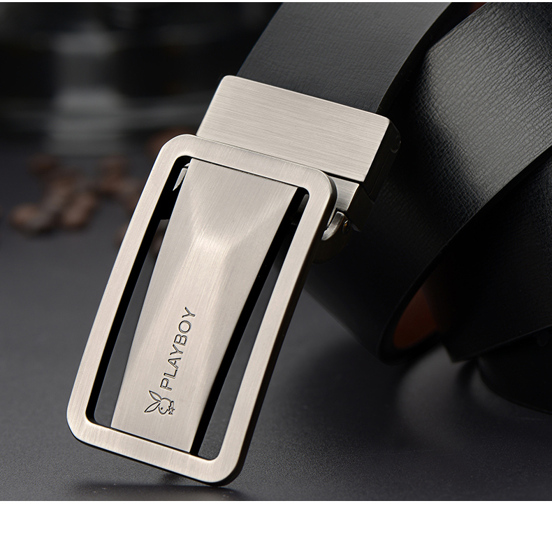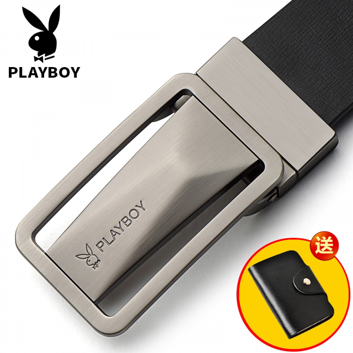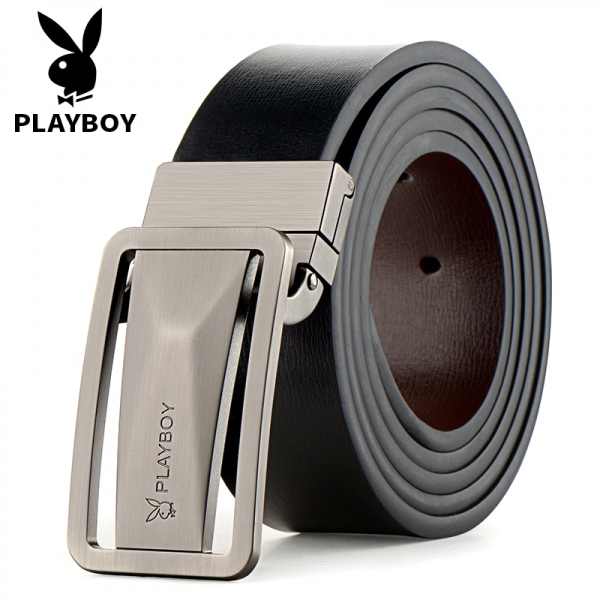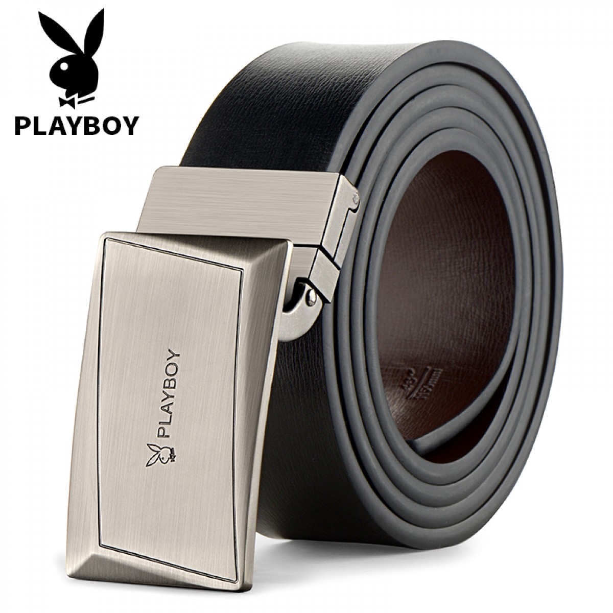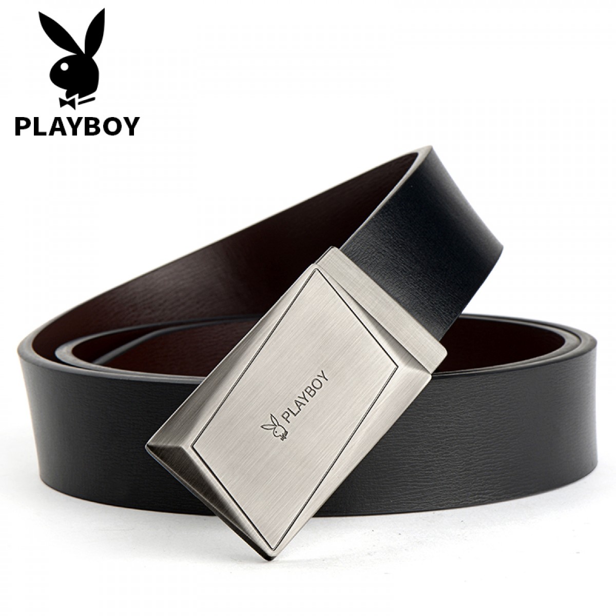 花花公子 皮带男真皮平滑扣商务休闲裤带合金板扣牛皮青年韩版腰带