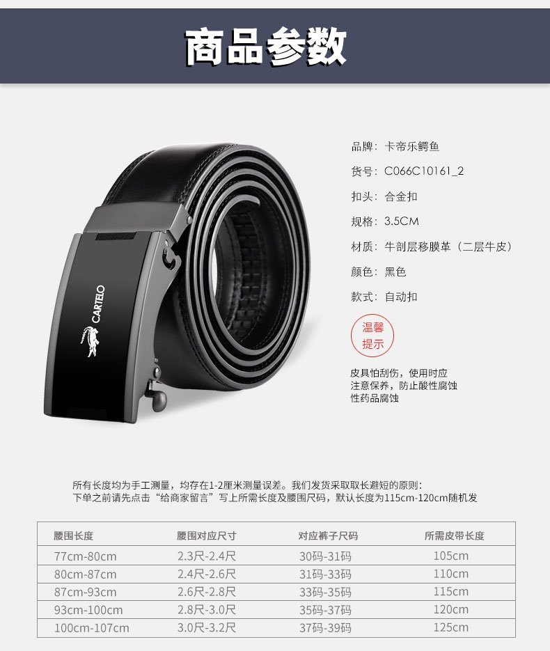 商品名称:卡帝乐鳄鱼 皮带男士真皮商务自动扣青年学生百搭休闲腰带中年裤带