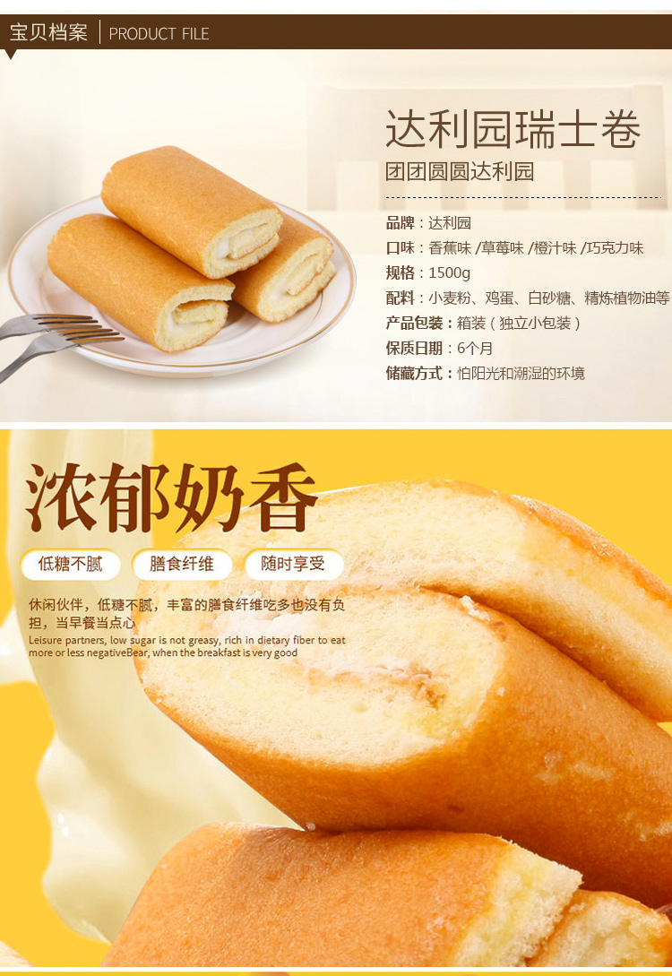 商品名称:达利园 瑞士卷1500g夹心蛋糕三明治老人小孩零食