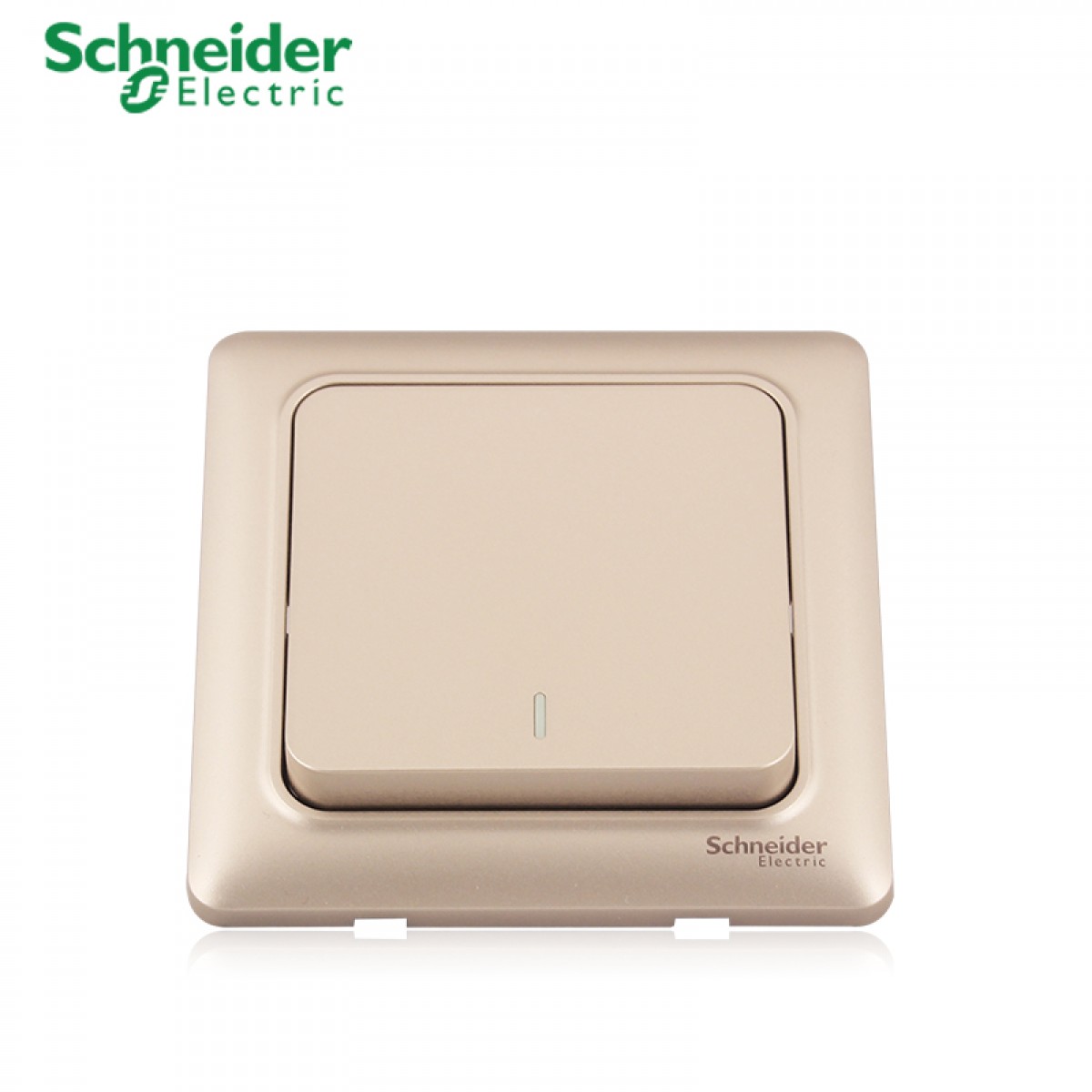 施耐德 面板开关 一开一位单联双控 电源开关插座面板 10A 睿意金