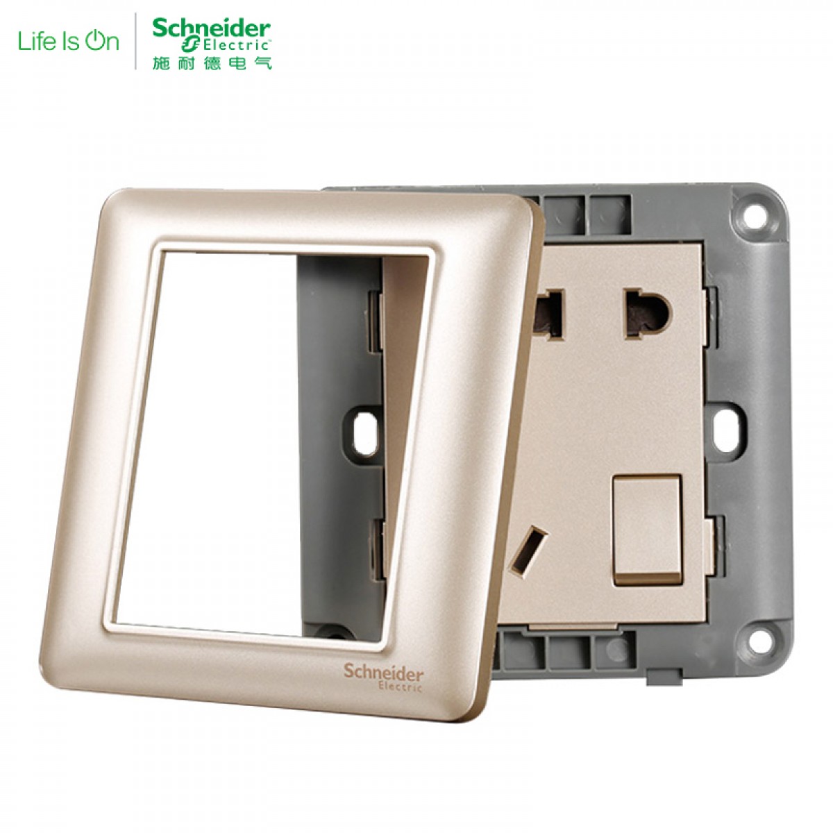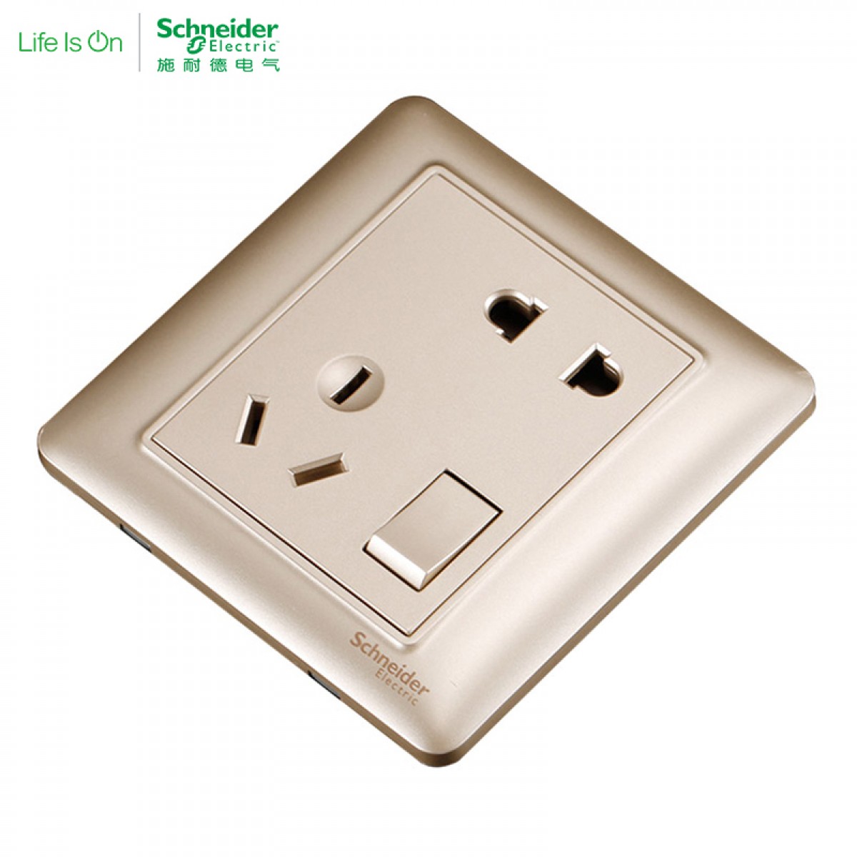 施耐德 开关插座二三墙壁面板一开斜五孔电源插座带开关 睿意金色