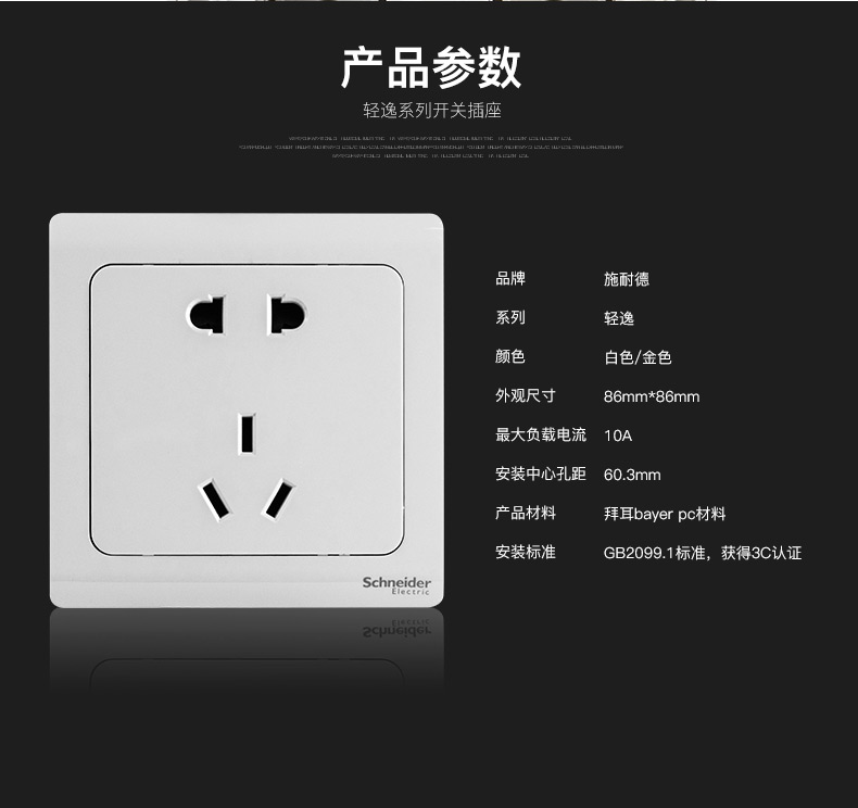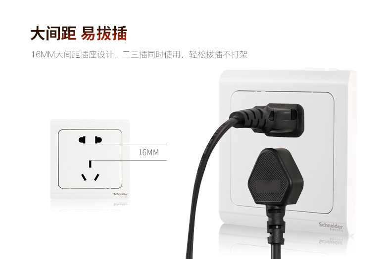 商品名称:施耐德 开关插座面板 轻逸系列白色 空调插座 电源插座 16A三孔