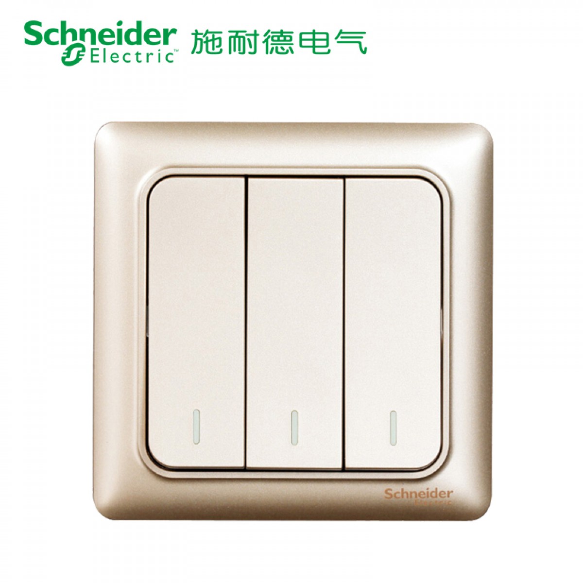 施耐德 面板开关 三开三位三联单控 墙壁电源开关插座面板 睿意金