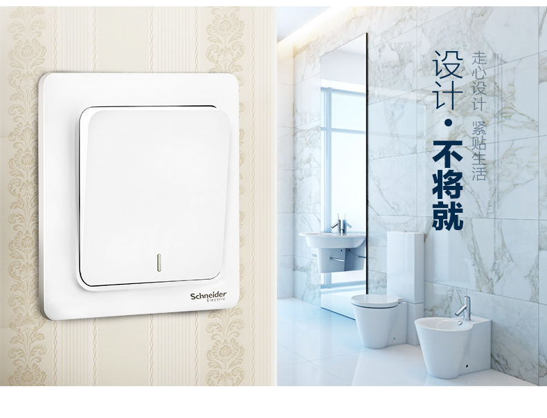施耐德 电气 四位4四开四联双控 86型电源插座开关面板 睿意白色