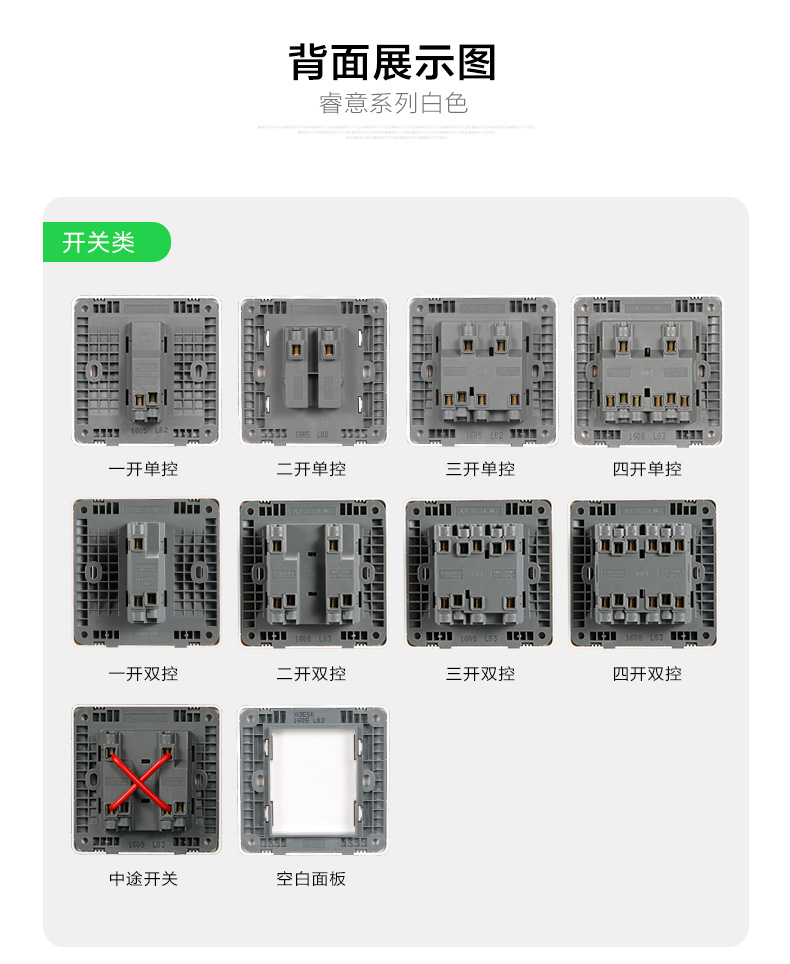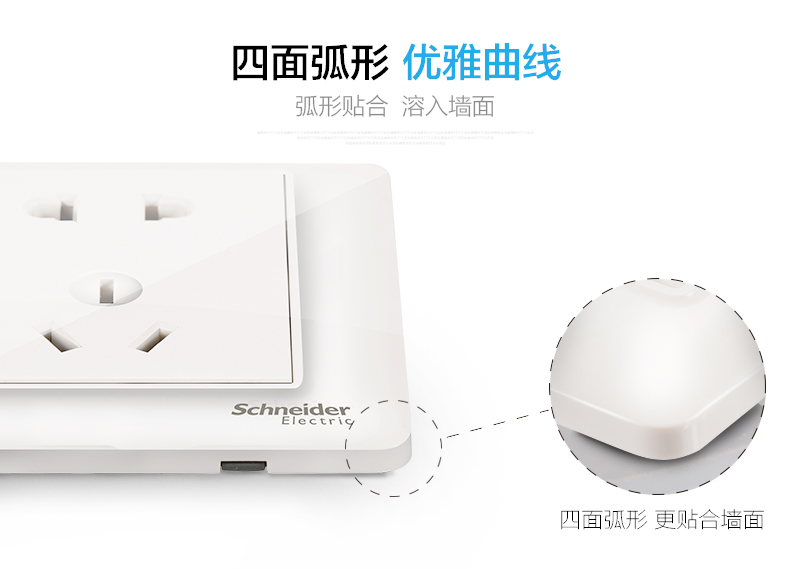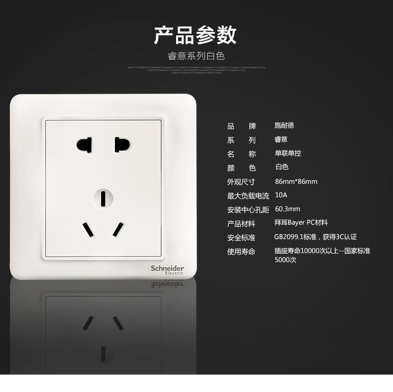 商品名称:施耐德 电气 四位4四开四联双控 86型电源插座开关面板 睿意白色