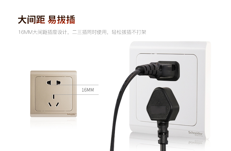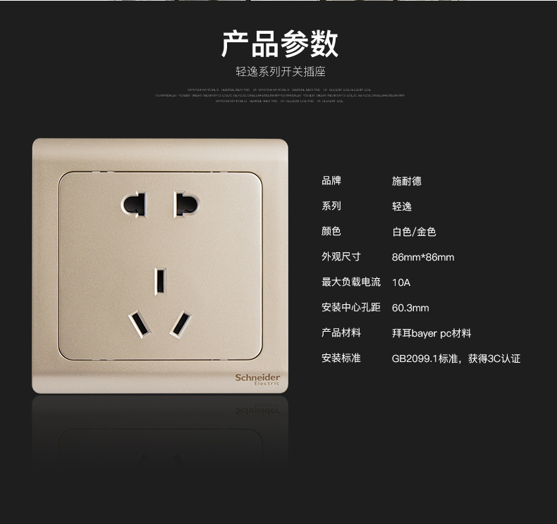 商品名称:施耐德 开关插座面板 轻逸系列金色 空调插座三孔插座 16A三孔插座