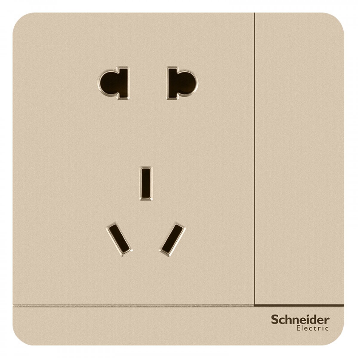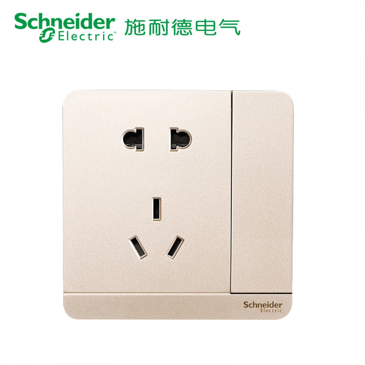 施耐德 电气 带开关二三插一开五孔插座 插座面板10A 绎尚薄暮金