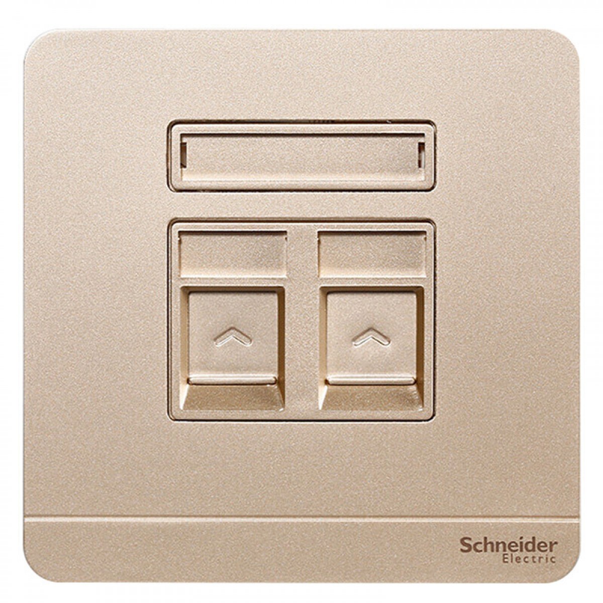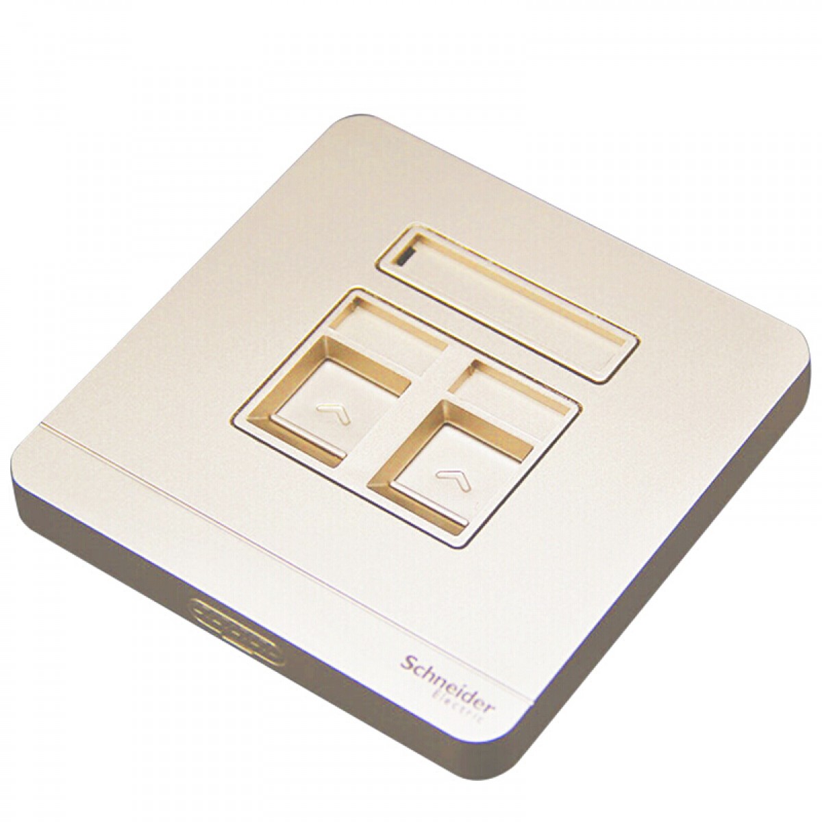 施耐德 电话+电脑插座 网络网线面板 绎尚薄暮金