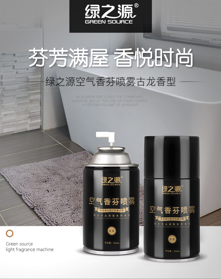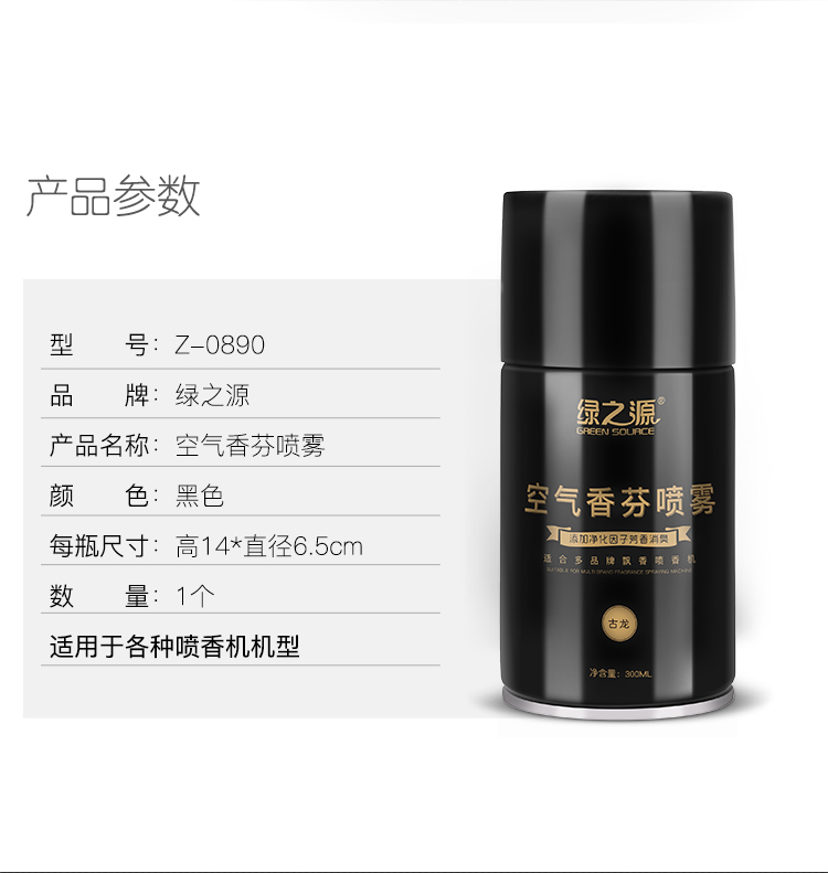 商品名称:绿之源 空气香芬喷雾香薰机酒店会所卫生间除臭香氛补充液300ml