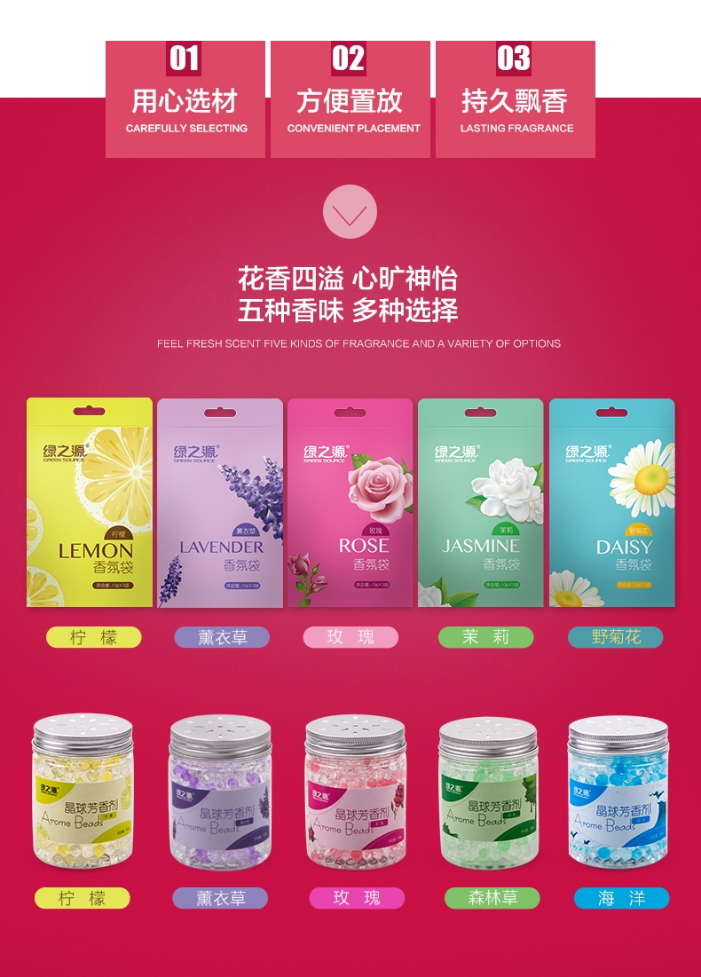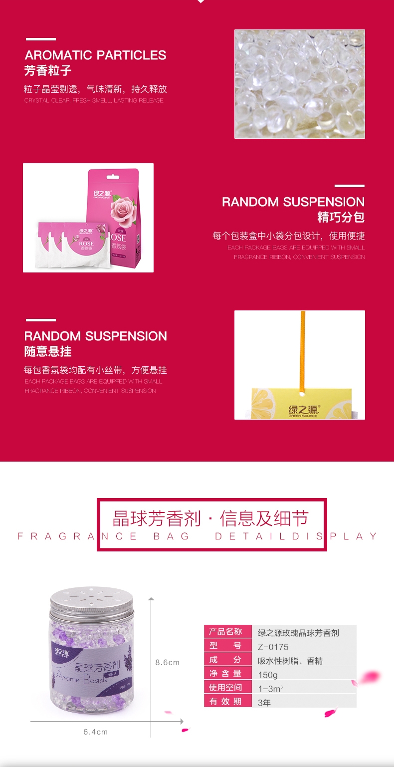 商品名称:绿之源 空气清新剂天然精油香氛袋房间厕所卫间用水晶珠固体芳香剂