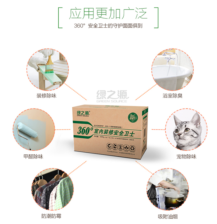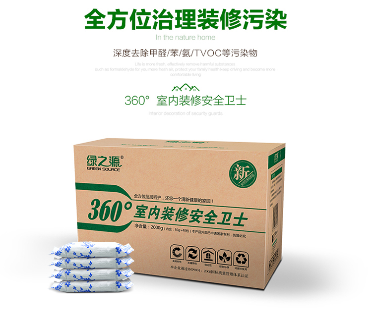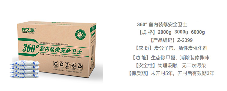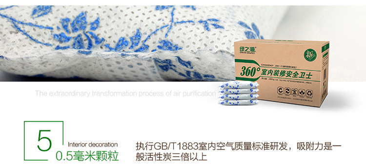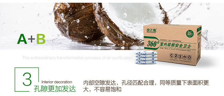 商品名称:绿之源 360°室内装修安全卫士活性炭椰壳炭包新房装修除甲醛除味