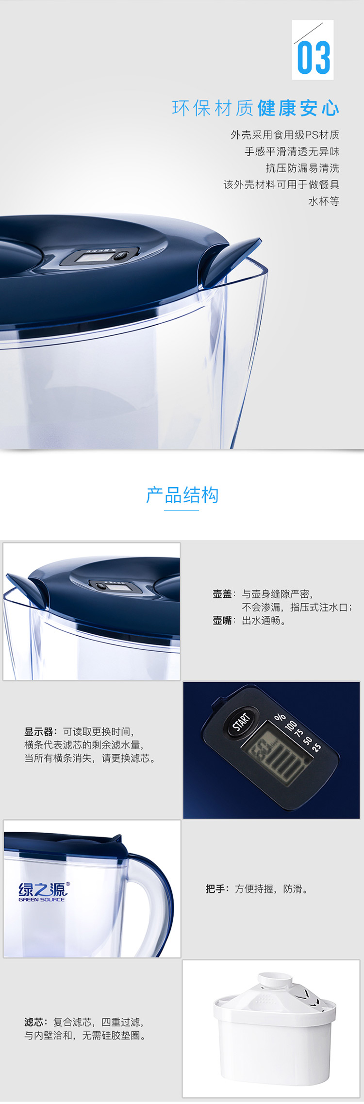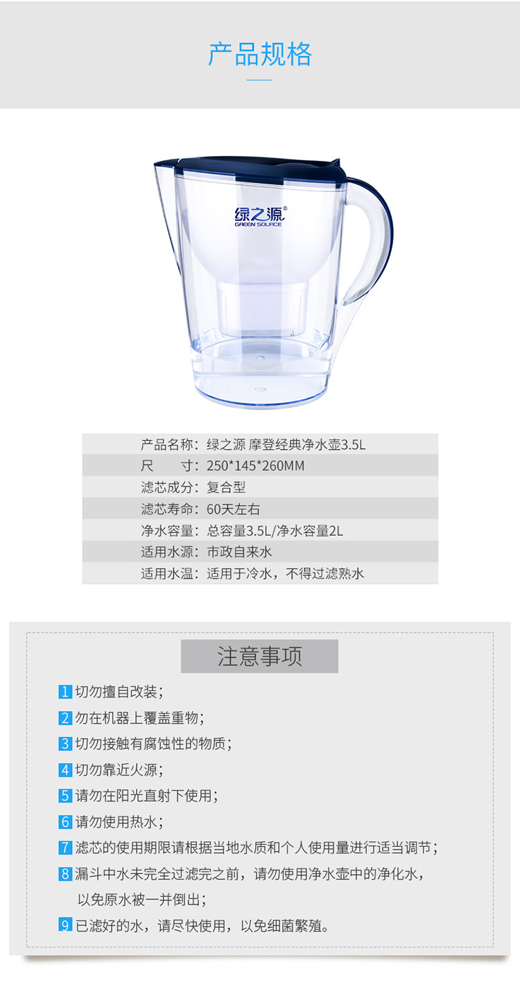商品名称:绿之源 经典净水壶3.5L净水器家用直饮自来水过滤器滤水壶净水器