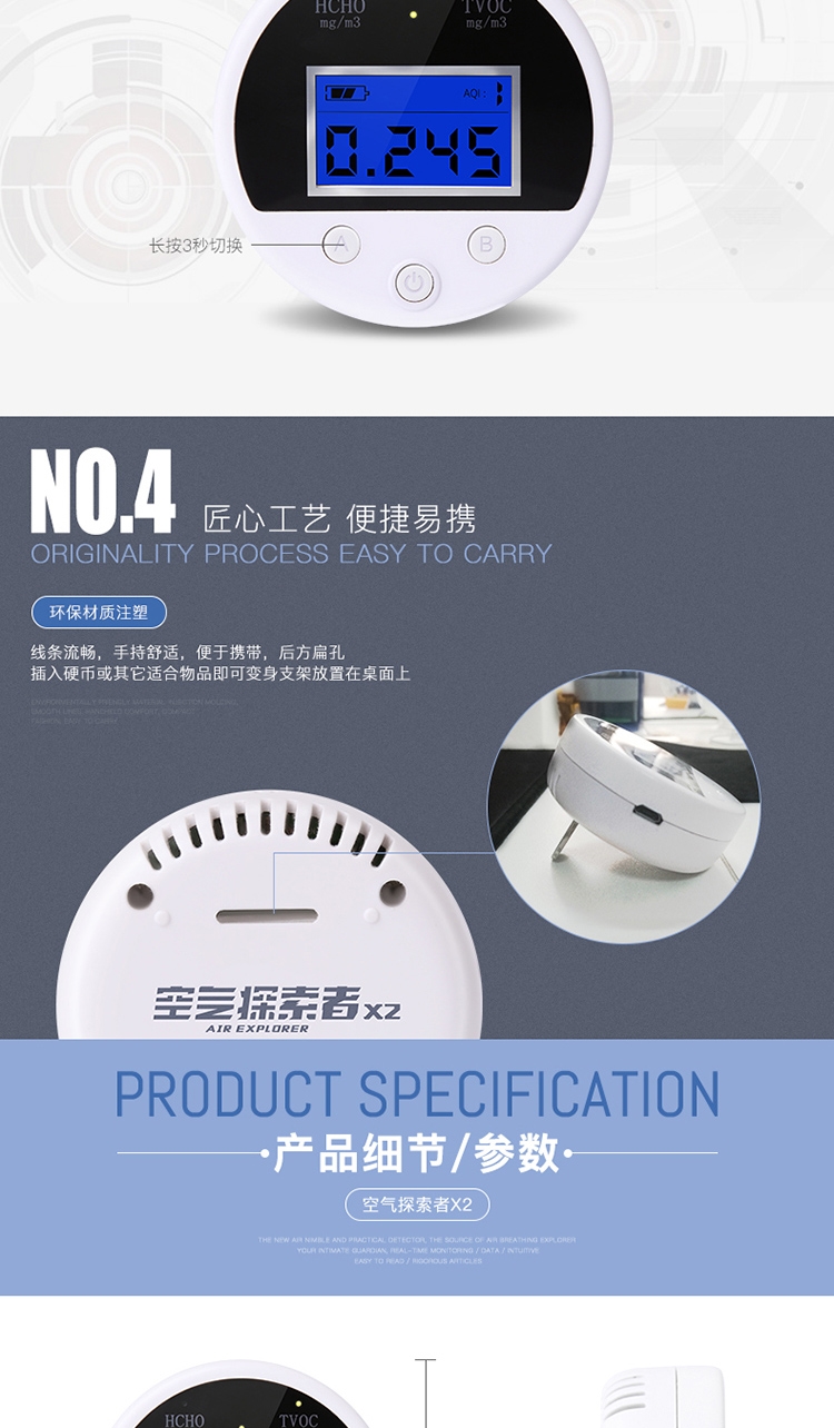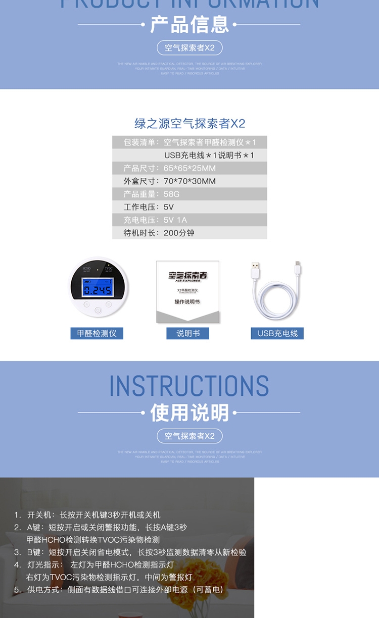 商品名称:绿之源 空气探索者甲醛检测仪X2室内家用便携式测甲醛TVOC检测盒
