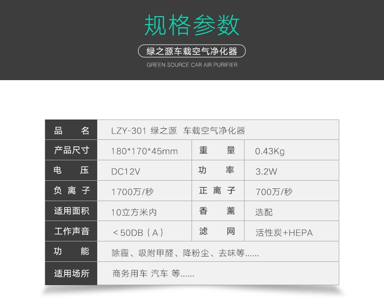 商品名称:绿之源 车载空气净化器香薰除甲醛异烟味 LZY-301