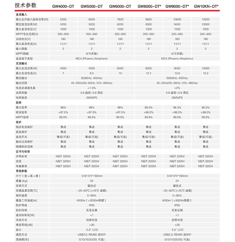 商品名称:固德威 双路MPPT三相分布式电站太阳能并网逆变器 GW4000DT 4KW