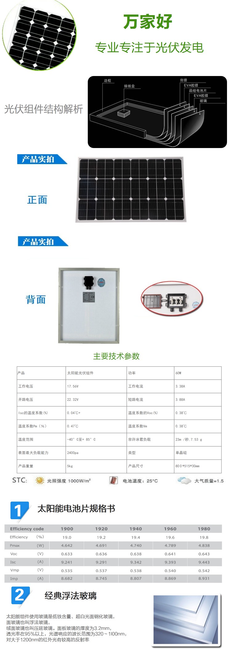 商品名称:国产 太阳能电池板家用发电系统单晶硅光伏组件蓄电池电瓶充电器 60W