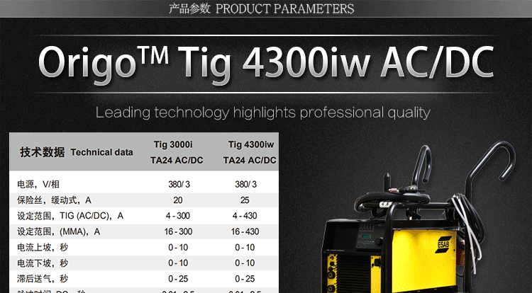 商品名称:ESAB/伊萨 Origo Tig AC/DC 多功能TIG焊机 3000i /4300iw