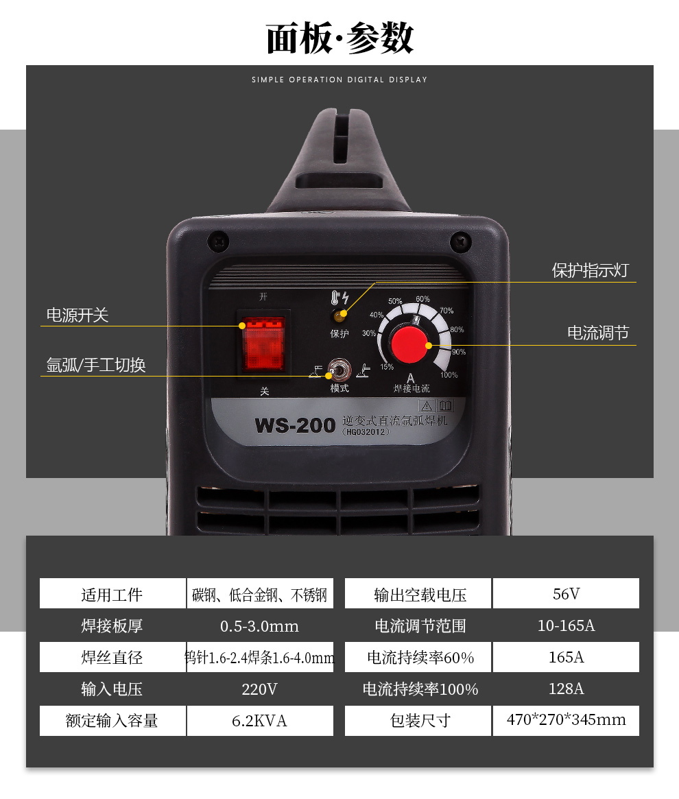 商品名称:沪工之星 工业家庭两用便携逆变直流手提式氩弧焊机220V高频 WS-200