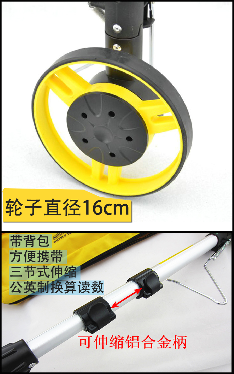 本产品是专为户外长距离测量而设计制造的,适用于各种地面条件,包括山坡、草地、崎岖不平的施工场地等。轻巧化的设计使野外作业人员携带非常方便,大大降低了工作疲劳程度。本产品一次测量的最长距离可以达到10公里,达到国际领先水平。宽大明显的数显系统使读数清晰准确,折叠手柄 大大缩小了占用的体积,因此被广泛用于专业测绘作业,道路工程、管线铺设工程、电线电缆工程等施工作业的测量和评估,园林风景及高尔夫球场的施工测量,交通事故距离位置的测量,及农田建设管理的测量等,其省进简便的优越性被越来越多的行业部门所发现和利用。