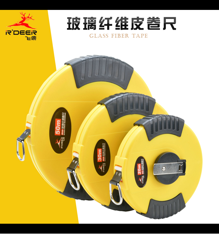 飞鹿 20米/30米/50米 玻璃纤维卷尺 皮尺 拉尺 盒尺 进口尺带
