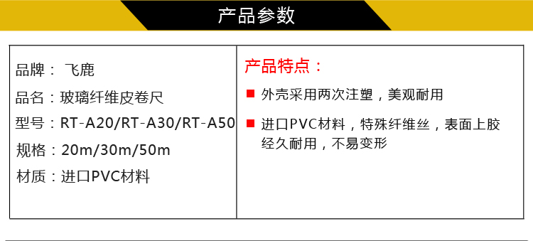 商品名称:飞鹿 20米/30米/50米 玻璃纤维卷尺 皮尺 拉尺 盒尺 进口尺带