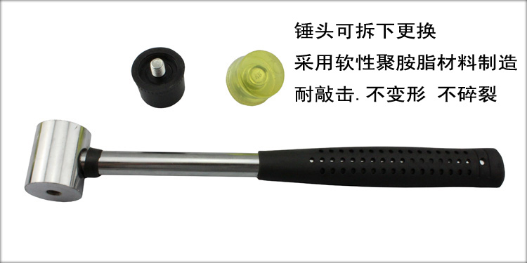 锤头采用优质耐油聚氨酯材料制造,软性半透明,恰当的硬度敲击时不会变形、碎裂