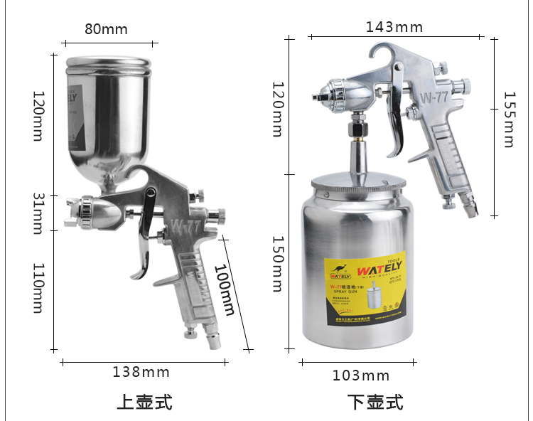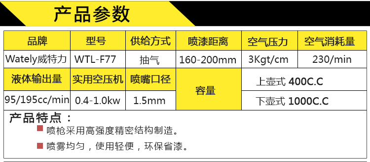 商品名称:Wately/威特力 下壶式气动喷漆枪 上壶式喷漆枪 气动喷枪 W-77
