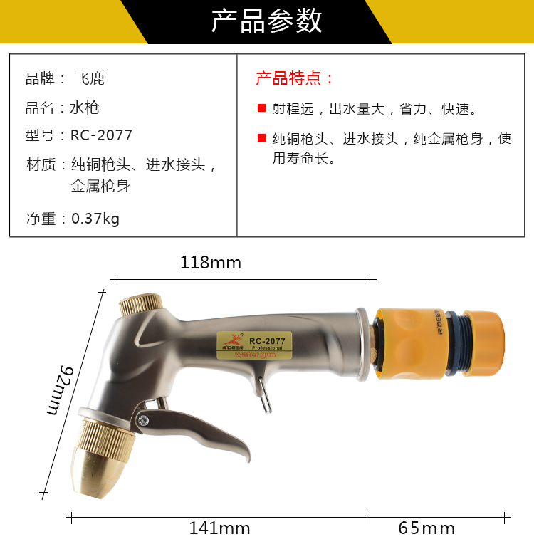 商品名称:飞鹿 高压洗车水枪 家用洗车水枪 浇花水枪 洗车水枪 RC-2077