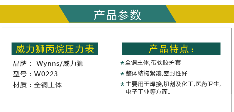 商品名称:Wynn's/威力狮 全铜主体丙烷减压表 丙烷减压器 丙烷压力表 W0223