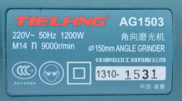 - 商品名称:铁鎯牌 150mm角向磨光机 6寸角磨机 手提砂轮机 打磨机 AG1503