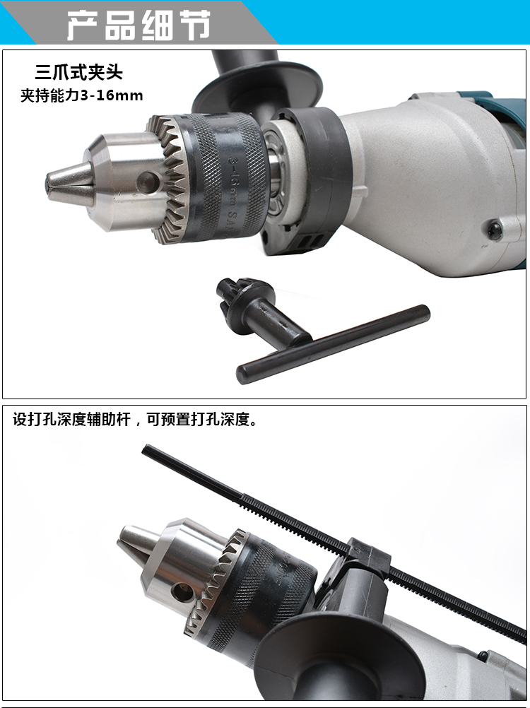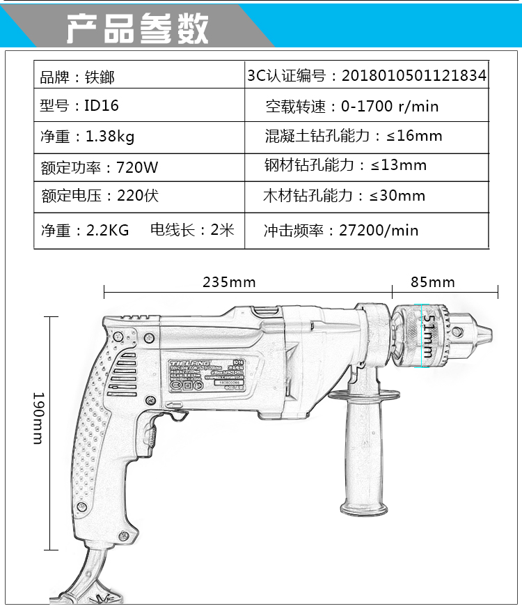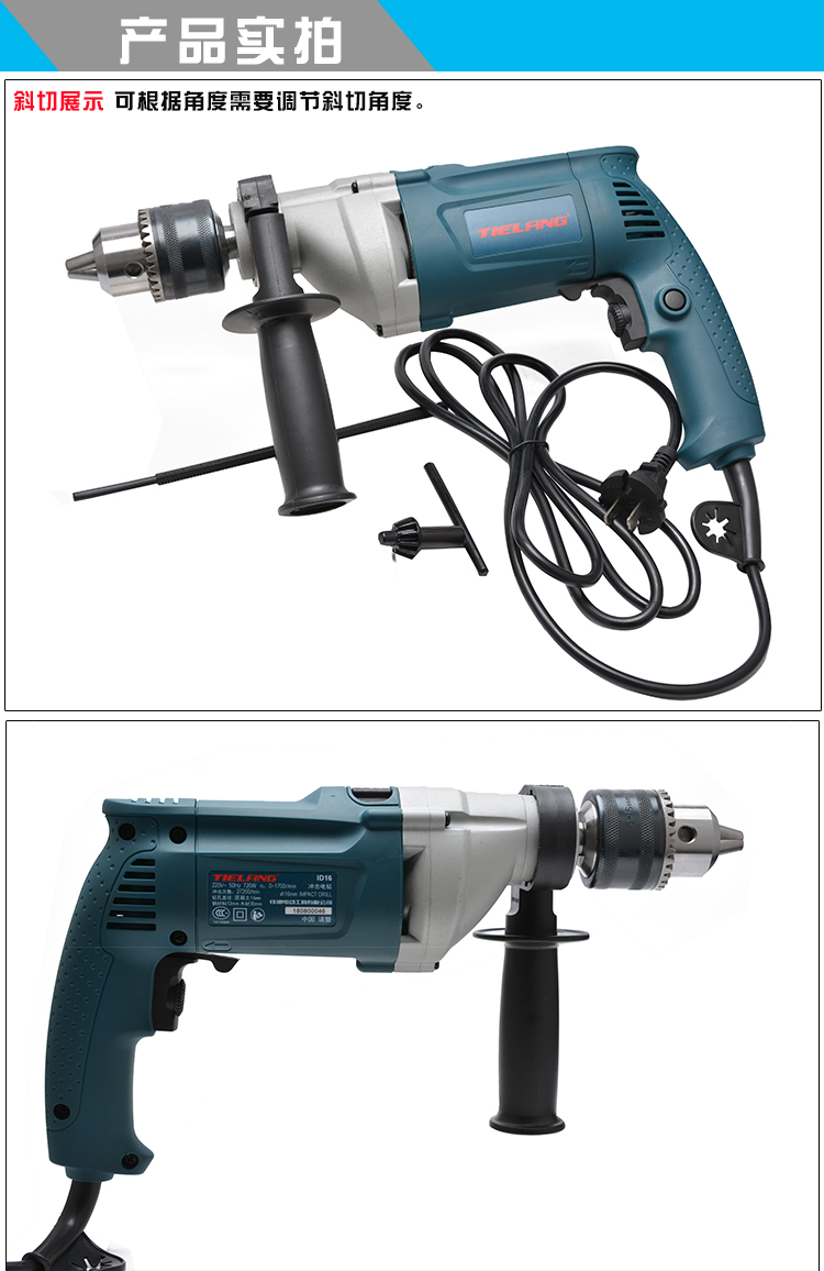 商品名称:铁鎯牌 工业级3-16mm冲击钻 大功率手枪钻 双功能电钻 电锤 ID16