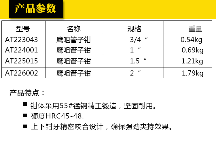 商品名称:Aotl/澳特利 鹰咀管子钳 水管钳 水泵钳 快速扳手 卫浴钳 多用管钳