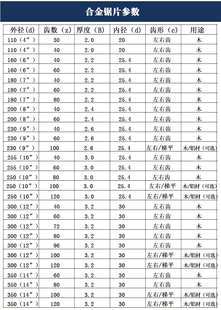 商品名称:国产 合金锯片 木工锯片 木材/铝材合金锯片 左右/梯平齿锯片 BANGNA