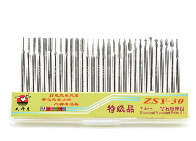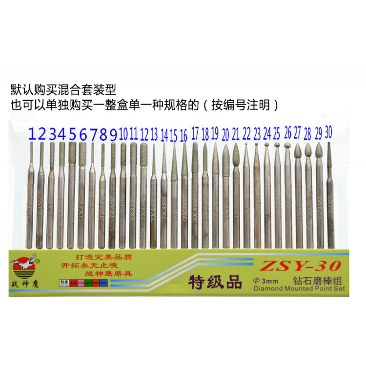 战神鹰 金刚石磨头 30支装 3mm柄磨针 30pcs钻石磨棒 合金磨头
