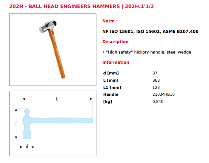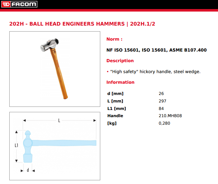 商品名称:FACOM 工程锤 FACOM 202H.1/2 202H1P1/2