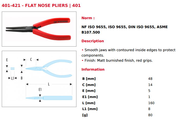 商品名称:FACOM 401平嘴钳 FACOM平嘴钳