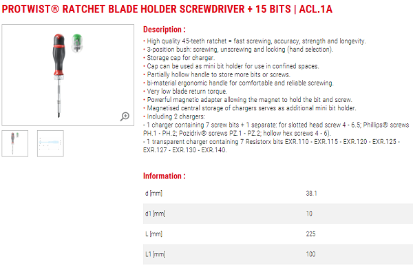商品名称:FACOM 棘轮螺丝批 ACL.1A