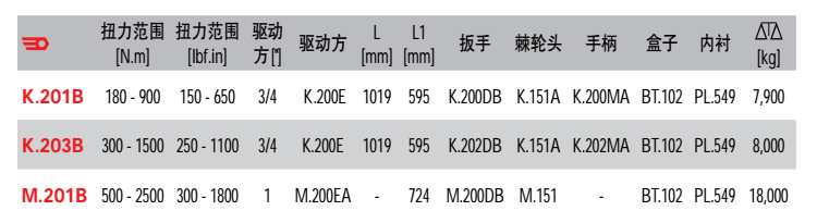 商品名称:FACOM 扭力扳手K.201B K.203B M.201B