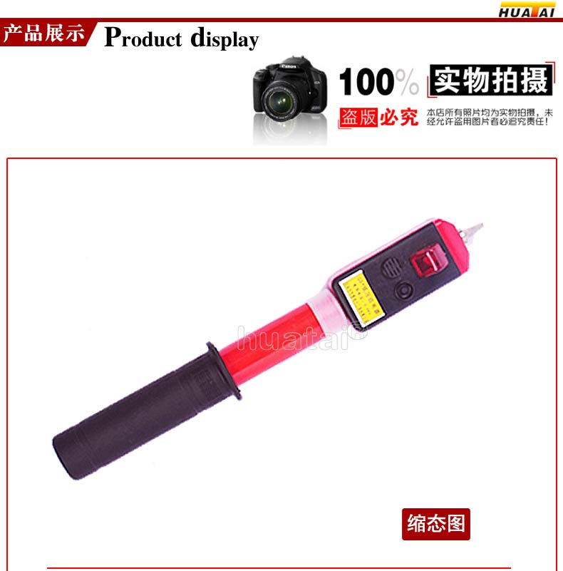 三、定期实验:为了保障人身和设备的安全,根据《电业安全工作规程》规定,验电器应定期作绝缘耐压实验、启动实验,潮湿的地方三个月,干燥的地方半年,如有导常,应停止使用。四、携带与保管: 1)避免跌落、挤压、强烈冲击、振动,不要用腐蚀性化学溶剂和洗涤等溶液擦洗。 2)不要放在露天烈日下曝晒,经常保持清洁,存放干燥处。 3)该验电器(指示器)使用SR44按钮和电池(1.5伏)4节,当按动自检? 开关时如指示器强度弱(包括异常)应及时更换电池。