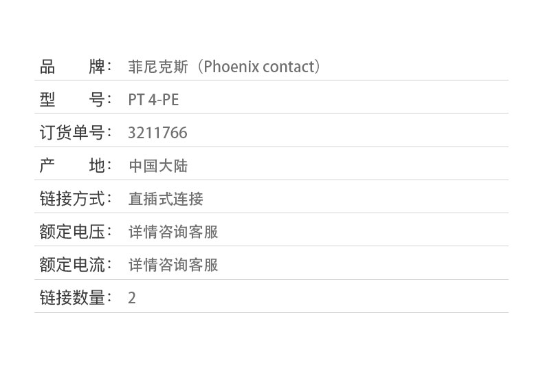 商品名称:菲尼克斯 接线端子直插式连接4平方 PT 4-PE-3211766