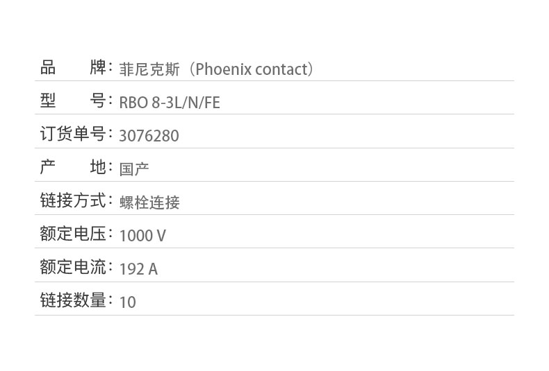 商品名称:菲尼克斯 接线端子螺栓连接70平方 RBO 8-3L/N/FE-3076280