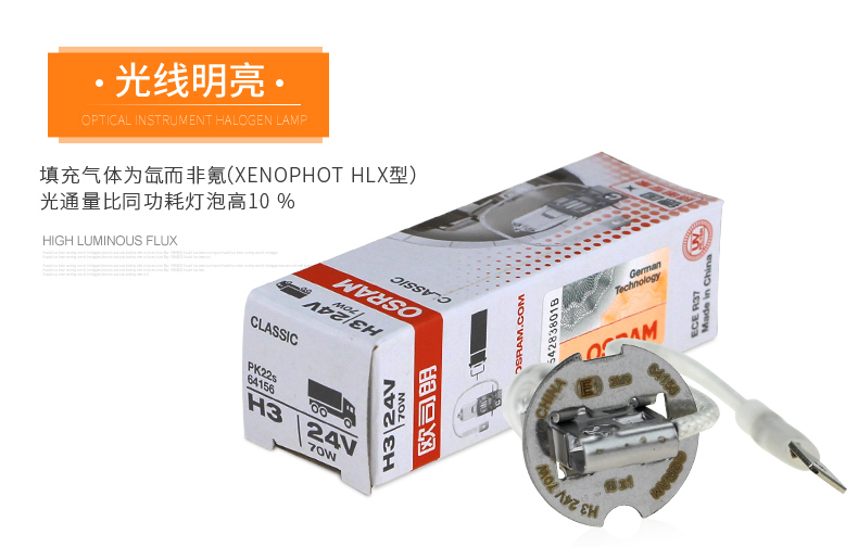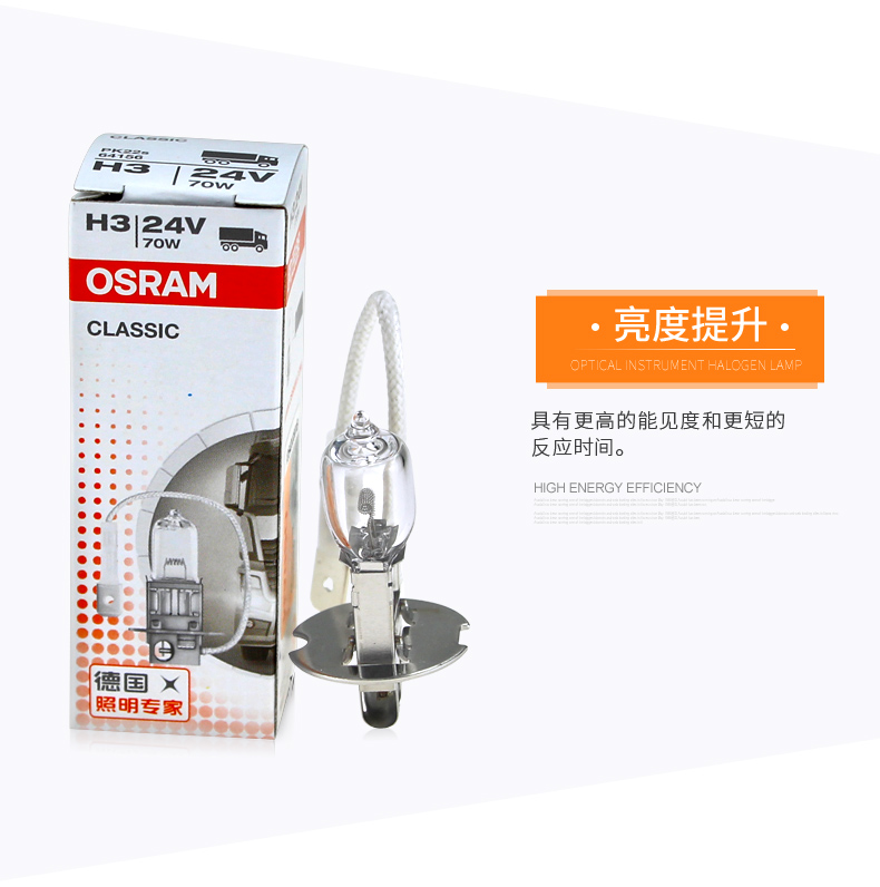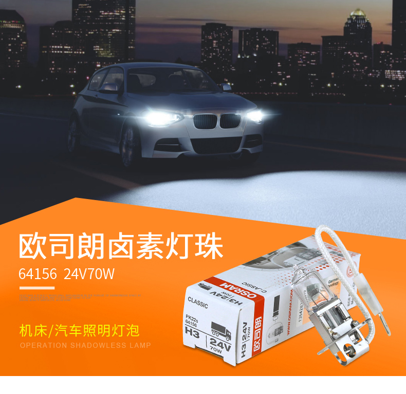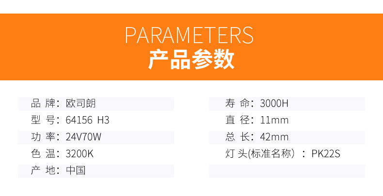 商品名称:欧司朗 汽车灯泡64156 24V70W H3机床照明灯泡工程车货车雾灯灯泡