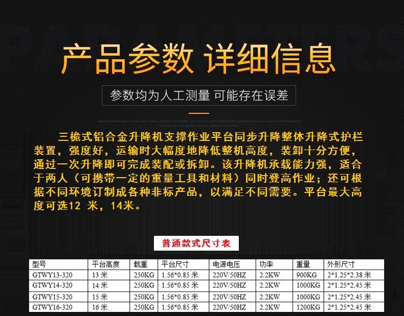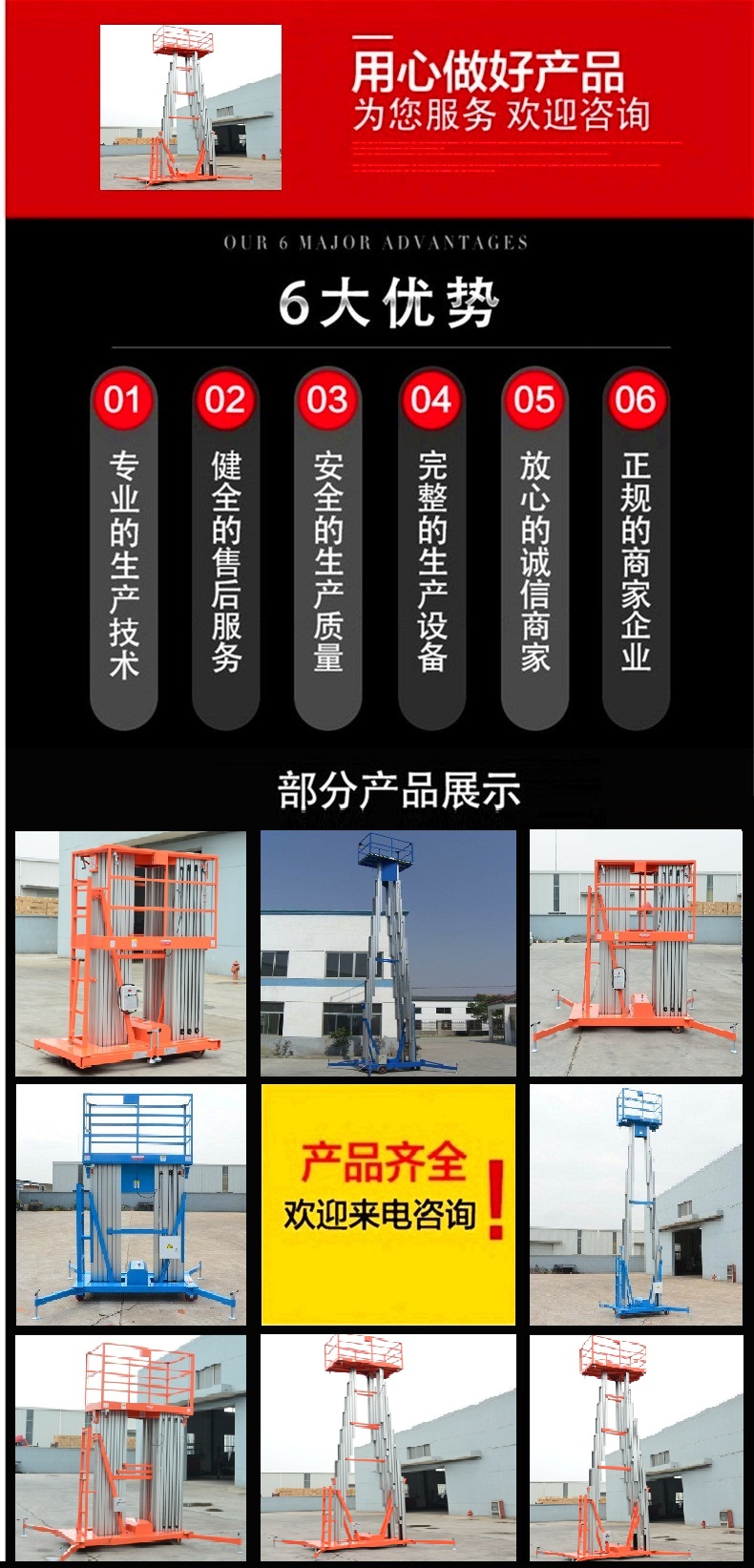 商品名称:凯美 三桅柱铝合金升降机升降平台小型轻便升降机升降台高空作业台 GTWY13-320