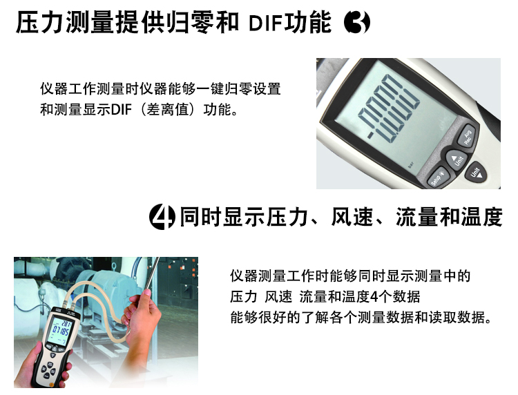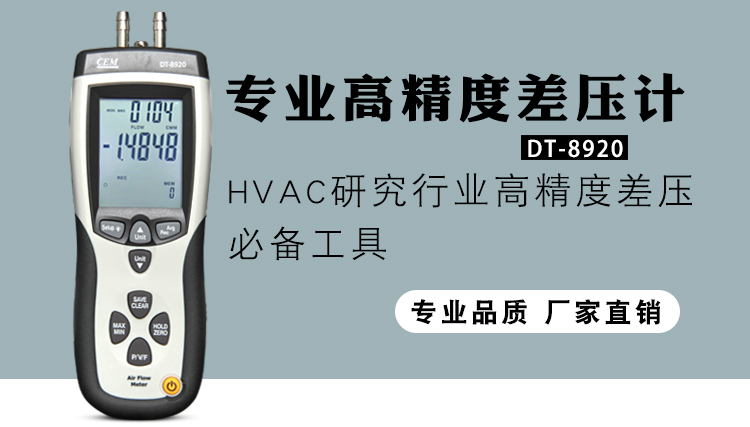 商品名称:华盛昌 高精度差压计测风速风量风温带皮托管可接电脑 DT-8920