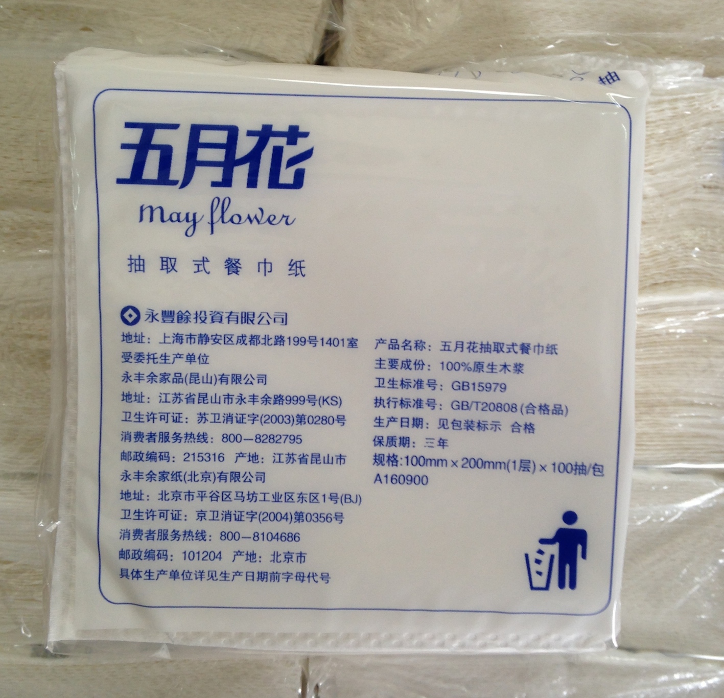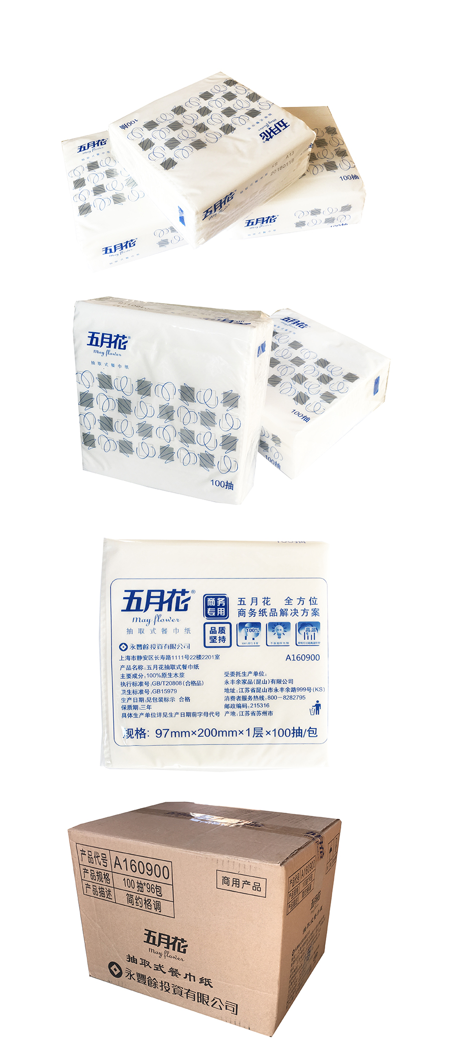 商品名称:五月花 100抽单层餐巾纸 面巾纸 餐饮用 A160900 96包