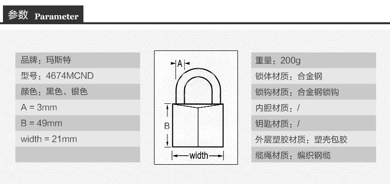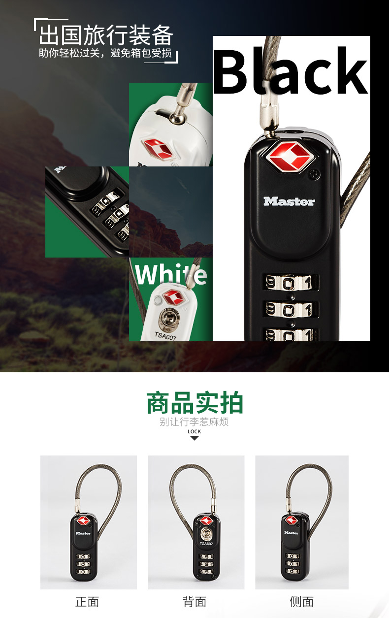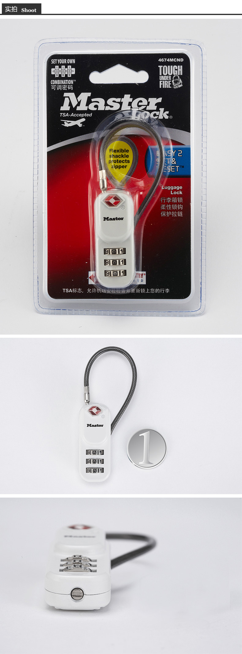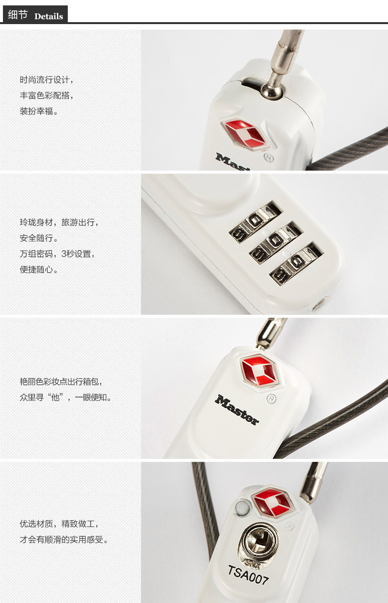 商品名称:玛斯特 出国旅行tsa钢丝密码锁海关锁行李箱拉杆箱皮箱包挂锁 4674MCND
