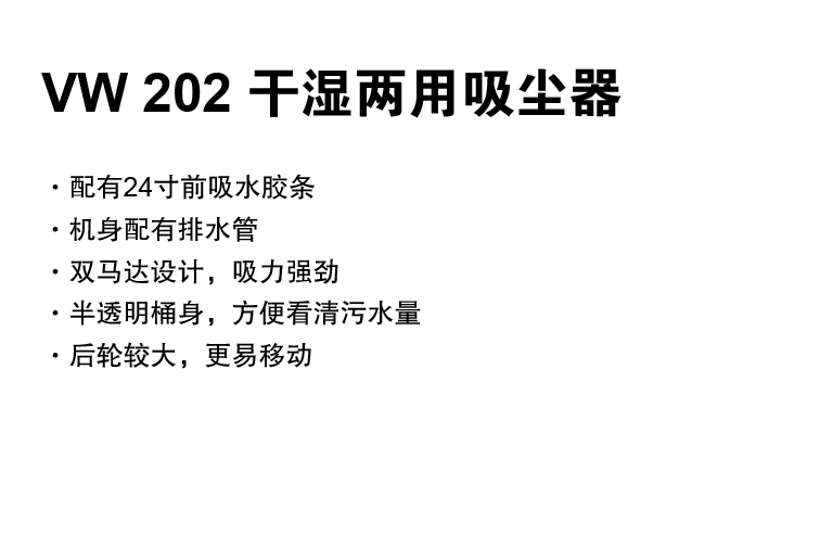 商品名称:威霸/Viper VW202吸水吸尘机75L双马达塑料桶身带前置粑头
