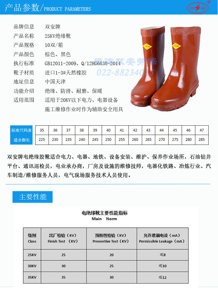 双安 高压25kv绝缘靴 橡胶电工靴 耐磨防滑中筒靴