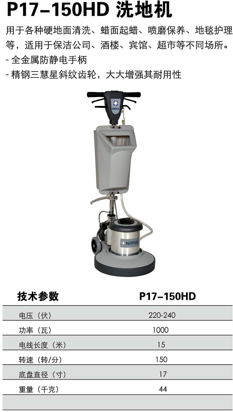 商品名称:力奇/Nilfisk P17-150HD 加重型单擦机 加重翻新机 加重晶面机原装配件
